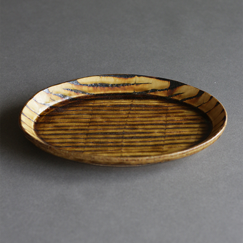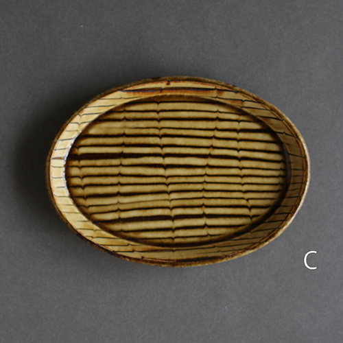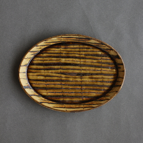 中川紀夫作 スリップウエア 楕円リム皿・中・フェザーコーム