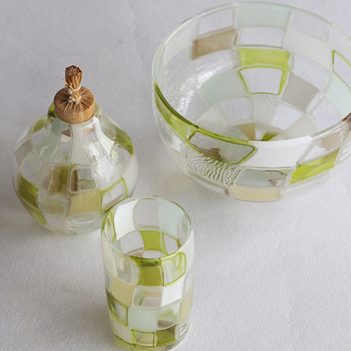 みずの みさ さんの作品は、複数のガラス棒を合わせ伸ばし溶かし、模様のチップを作り(金太郎飴のようにというと想像しやすいでしょうか?)、組み合わせて模様を描く「ムリーニ技法」を中心に、緻密な手仕事から生まれる独自の美しさが魅力です。