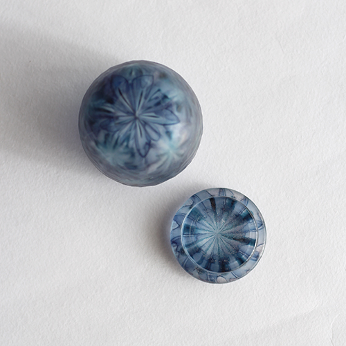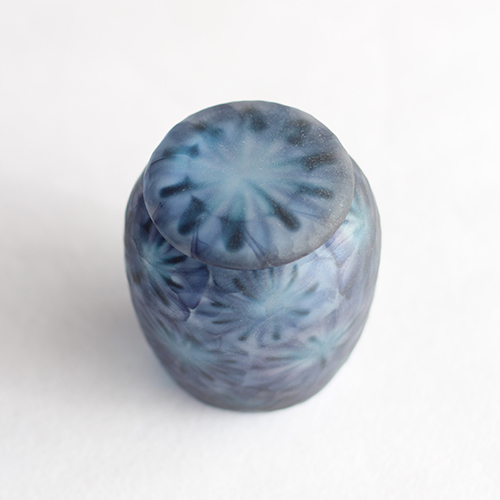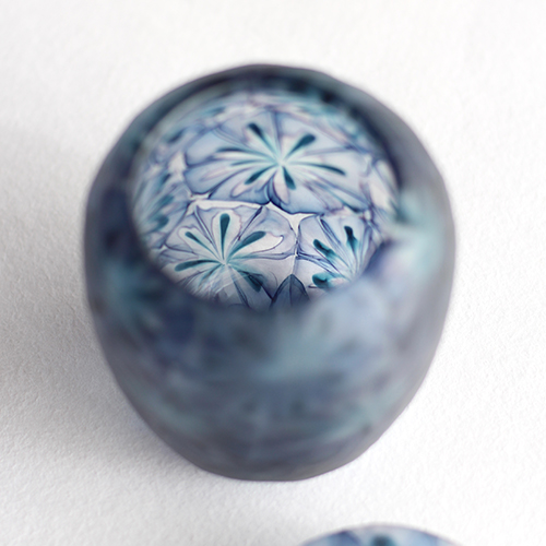 みずの みさ さんの作品は、複数のガラス棒を合わせ伸ばし溶かし、模様のチップを作り(金太郎飴のようにというと想像しやすいでしょうか?)、組み合わせて模様を描く「ムリーニ技法」を中心に、緻密な手仕事から生まれる独自の美しさが魅力です。