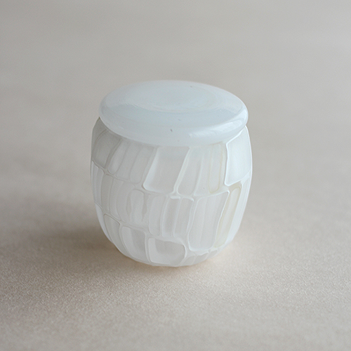 みずの みさ さんの作品は、複数のガラス棒を合わせ伸ばし溶かし、模様のチップを作り(金太郎飴のようにというと想像しやすいでしょうか?)、組み合わせて模様を描く「ムリーニ技法」を中心に、緻密な手仕事から生まれる独自の美しさが魅力です。