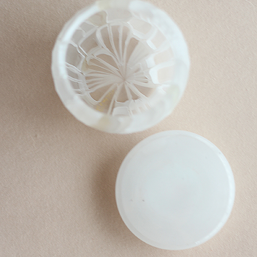 内側はツルツルですが、外側だけカットガラスの技法を使いマットな質感に。