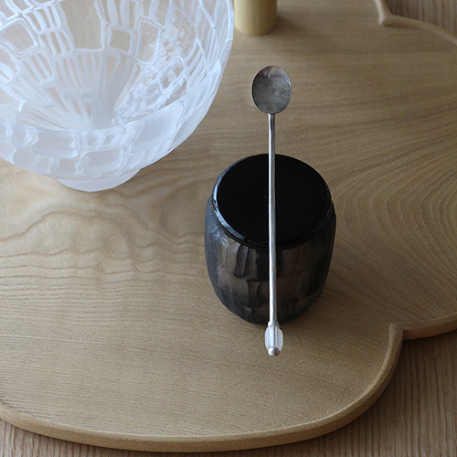 内側はツルツルですが、外側だけカットガラスの技法を使いマットな質感に。