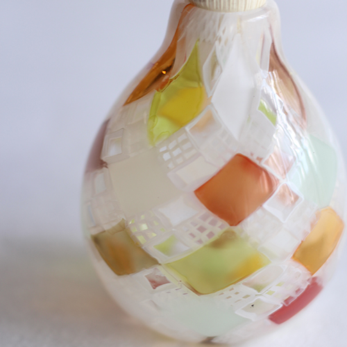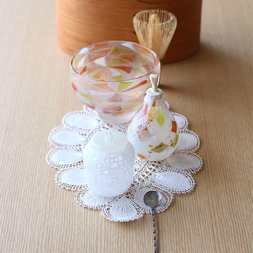 透明なガラスに浮かぶ、繊細な色と模様の世界。