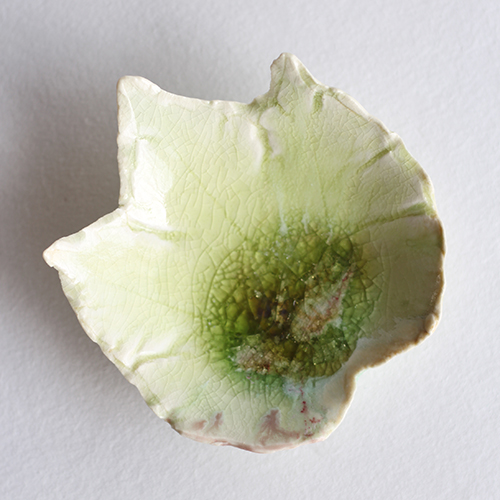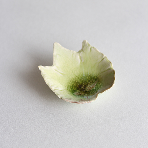 写し取られた葉脈、葉の揺らぎ、釉薬濃淡も美しい。