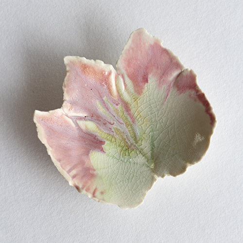 写し取られた葉脈、葉の揺らぎ、釉薬濃淡も美しい。