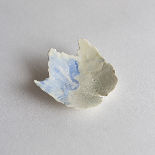 写し取られた葉脈、葉の揺らぎ、釉薬濃淡も美しい。