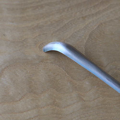 銀の板を即興で叩いたり曲げたりして仕上げた形です。型を使っていないので、偶発的に生じる地金の形や表情をお楽しみいただけます。