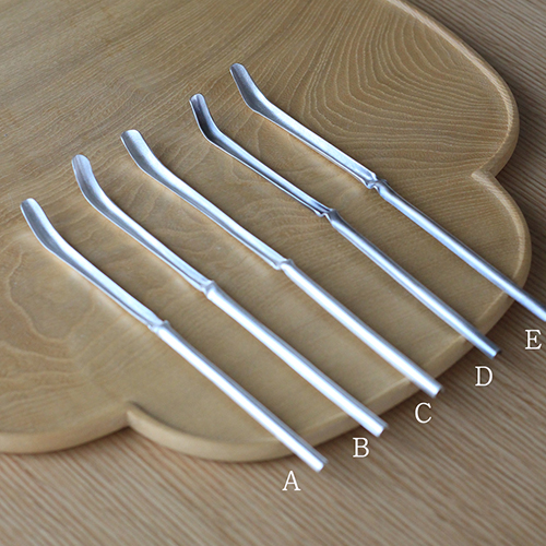 銀のさまざまな表情が楽しめ、古いお道具にもモダンなお道具にも合わせやすいと思います。