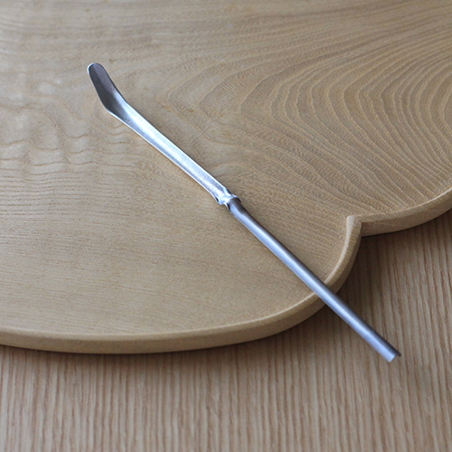 現在は、自宅に設えた茶室で身近な人とともにお茶を楽しみながら、日常に寄り添う道具づくりを続けています。現代の暮らしにも、古い道具にも調和する金工作品が、静かなお茶の時間をそっと引き立ててくれます。