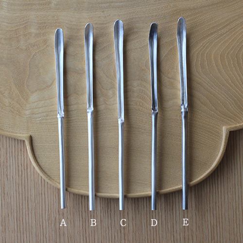 銀のさまざまな表情が楽しめ、古いお道具にもモダンなお道具にも合わせやすいと思います。