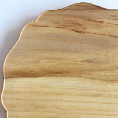さまざまな木で作られており、木ごとに重さや色、木目模様が異なるのも魅力。まさに出会い器です。ガラスコーティングが施されているため汚れがつきにくく、お手入れもとても簡単です。また、十分に乾燥させてから制作されているため、反りや歪みも出にくくなっています。