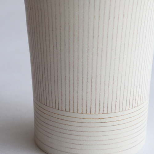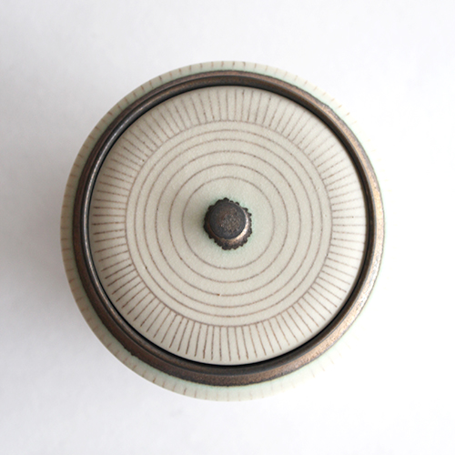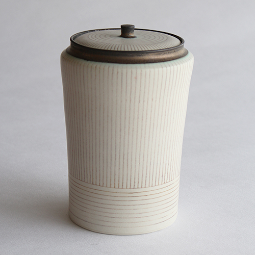 小関康子さんの蓋物大(象嵌ストライプ)です。
