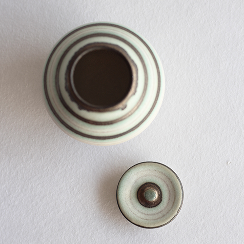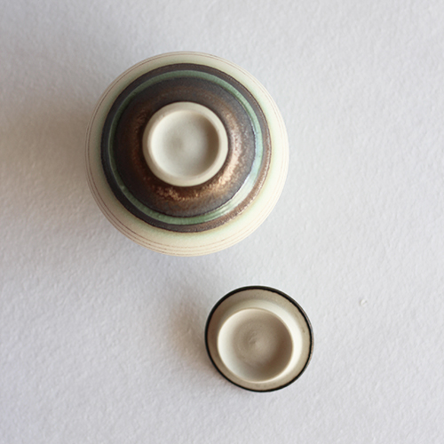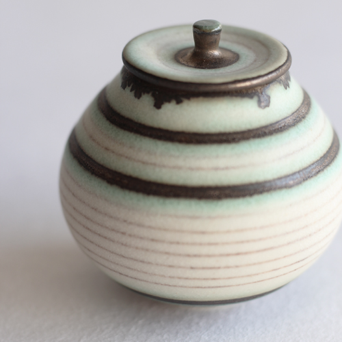 小関康子さんの豆蓋物(象嵌ボーダー)です。