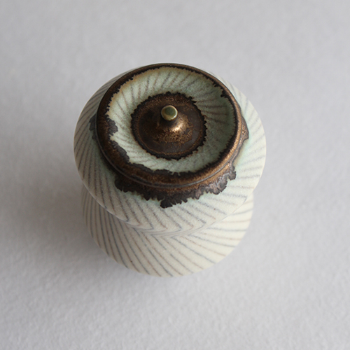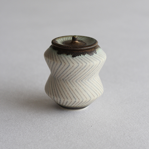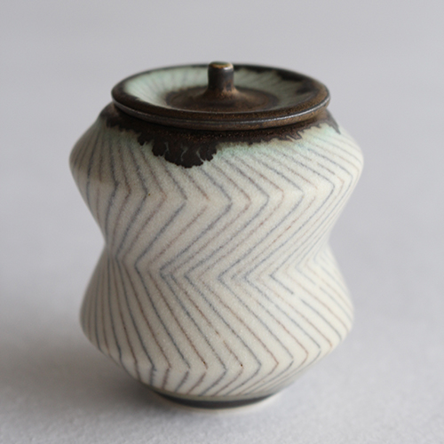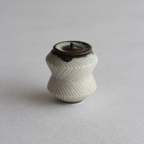 YO20 小関康子作 豆蓋物(青と茶のジグザグストライプ)