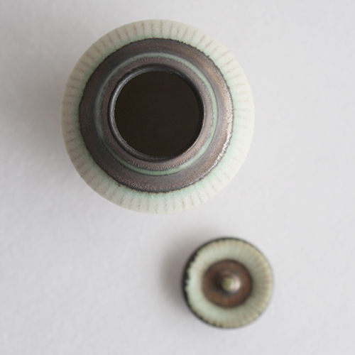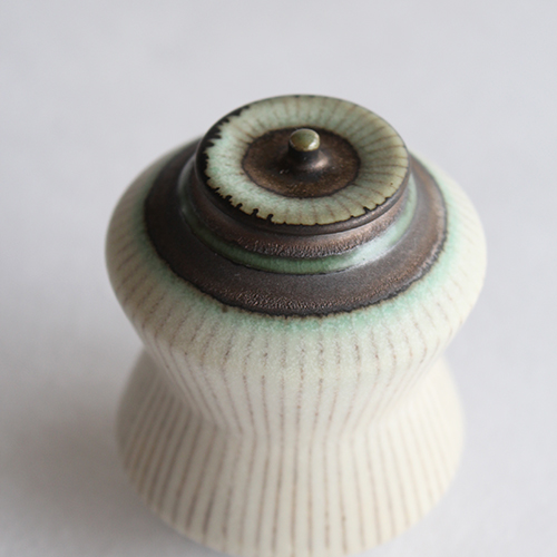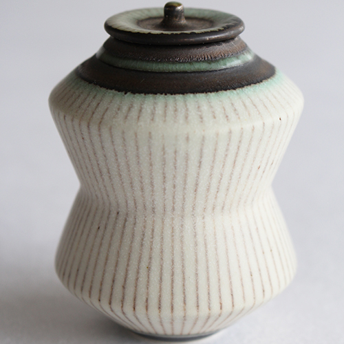 小関康子さんの豆蓋物(象嵌ストライプ)です。