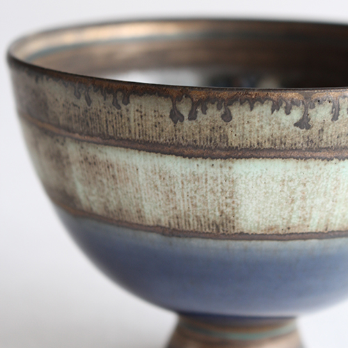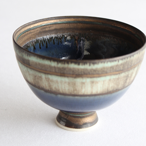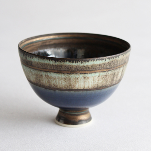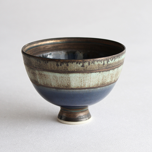 小関康子さんのグリーン象嵌瑠璃高台碗・Bです。