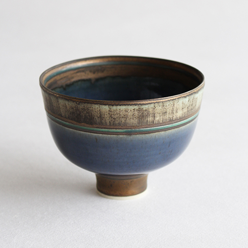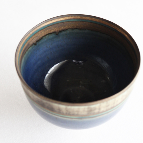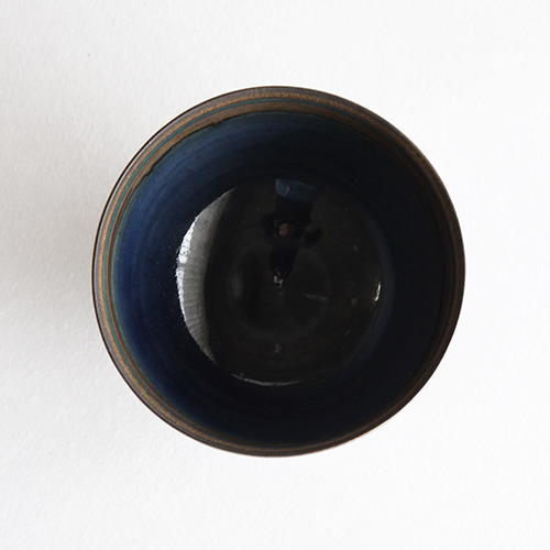 小関康子さんのグリーン象嵌瑠璃高台碗です。