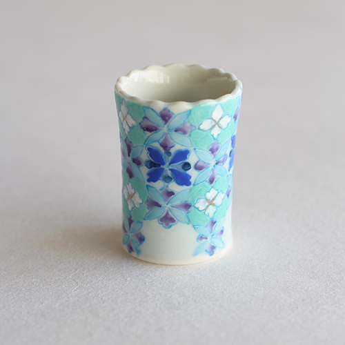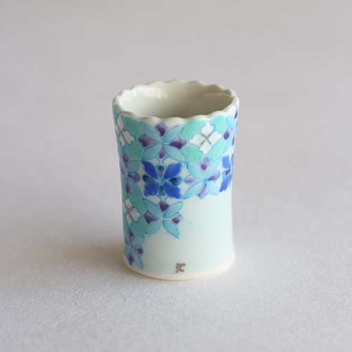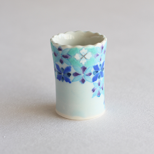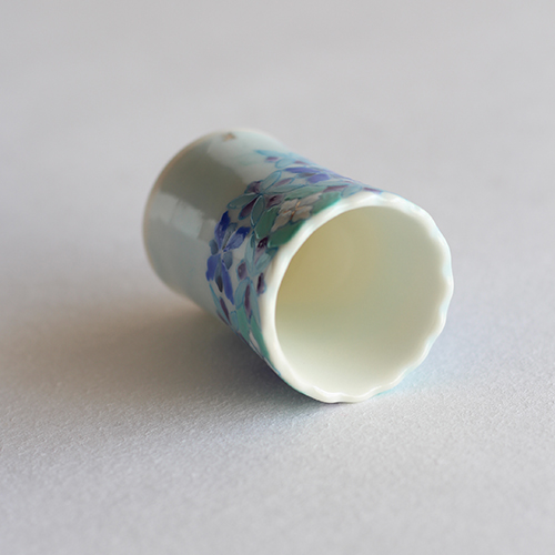 多田佳豫さんの白金彩青華文 輪花茶巾筒です。